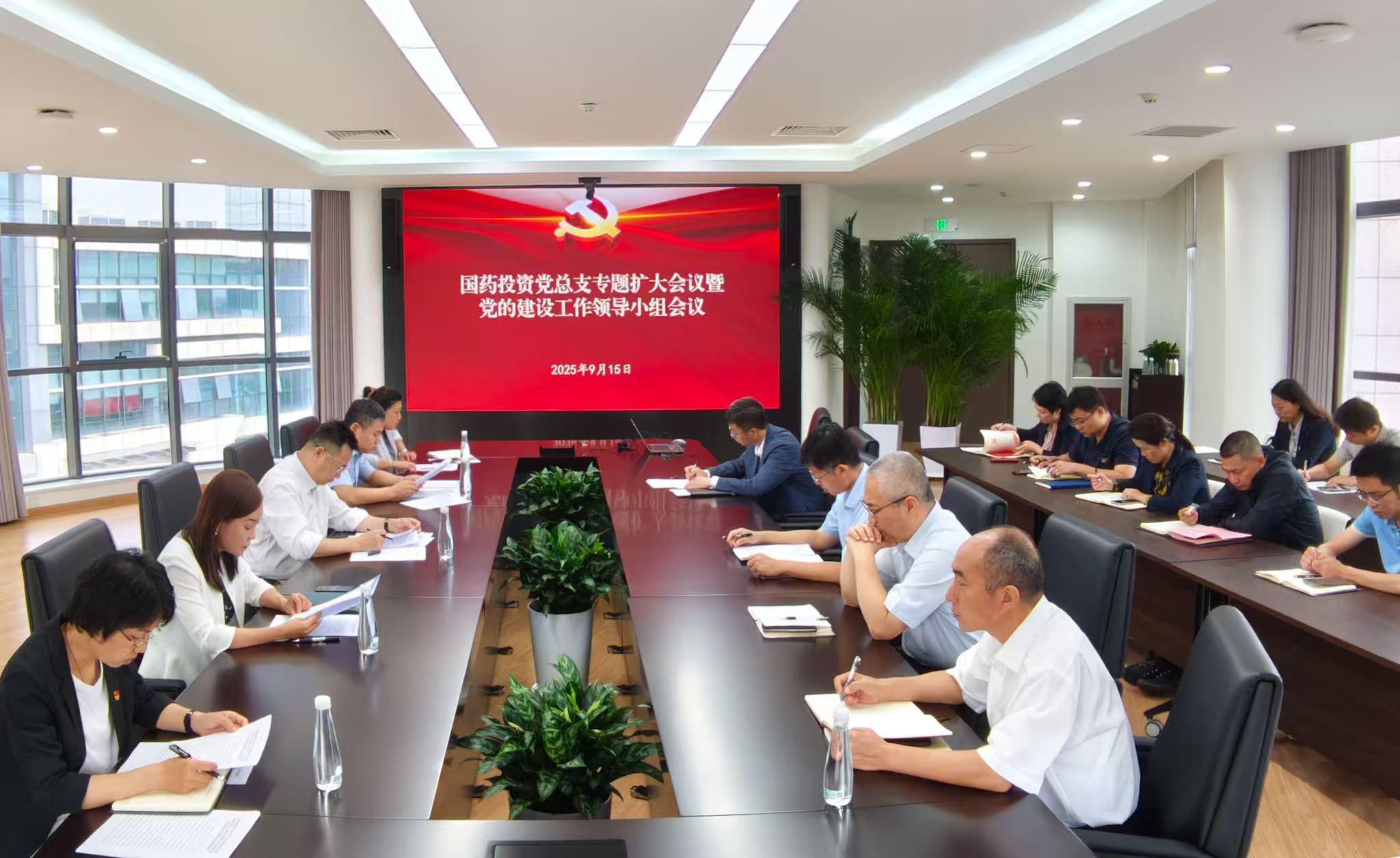 9 月 15 日,国药投资党总支召开扩大会议暨党建工作领导小组会议,认真传达学习习近平总书记关于深入贯彻中央八项规定精神的重要指示精神,学习贯彻中央党的建设工作领导小组会议精神,贯彻落实国资委党委、国药集团党委部署要求,总结公司学习教育工作,研究部署巩固拓展学习教育成果、推进作风建设常态化长效化举措。国药投资党总支书记、董事长英军讲话,党总支副书记、总经理王永利主持会议。
